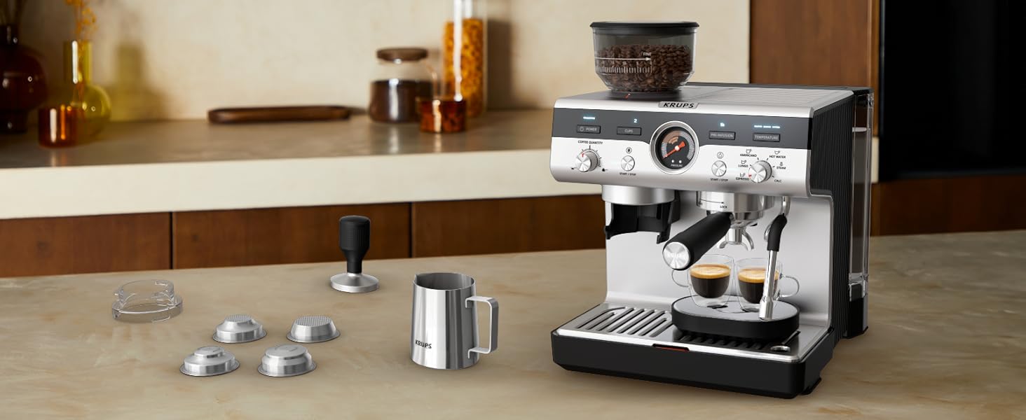 Krups XP801TG0 Manual Espresso Machine With Grinder Black/Stainless Steel